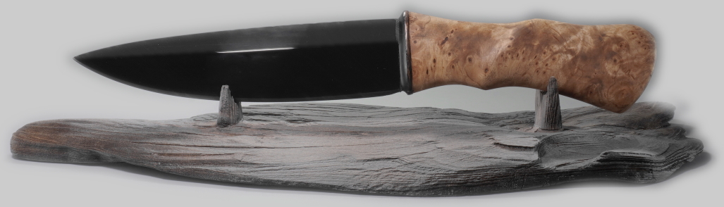 | 全長 24.4cm (ハンドル 白樺の瘤) 流木の台付 55,000円 |