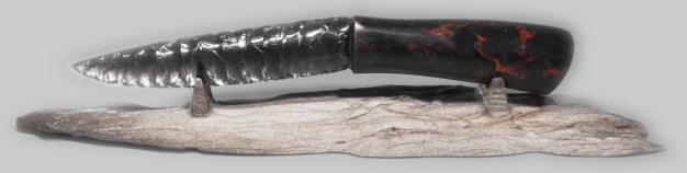 | 1-20 透明度の高いブレードと紅十勝ハンドル(半光沢のコラボです 流木の台付 ※ブレードは逆光での撮影です サイズ 全長13.5㎝ 22,000円 |