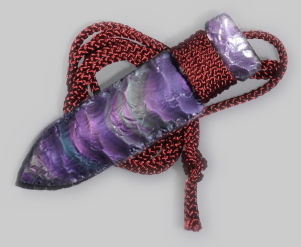 1-56 ブレードは黒曜石、ハンドルはエゾシカの角で、ハンドルの後部 に紐を通す穴をあけています。(アクセサリー用紐、ビーズ付属) 流木の台付 サイズ 全長9.7㎝ 15,400円 |