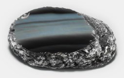 | 光が当たると不思議な色光を放つ黒曜石 サイズ 直径3.9×厚さ1.4cm 15,400円 |